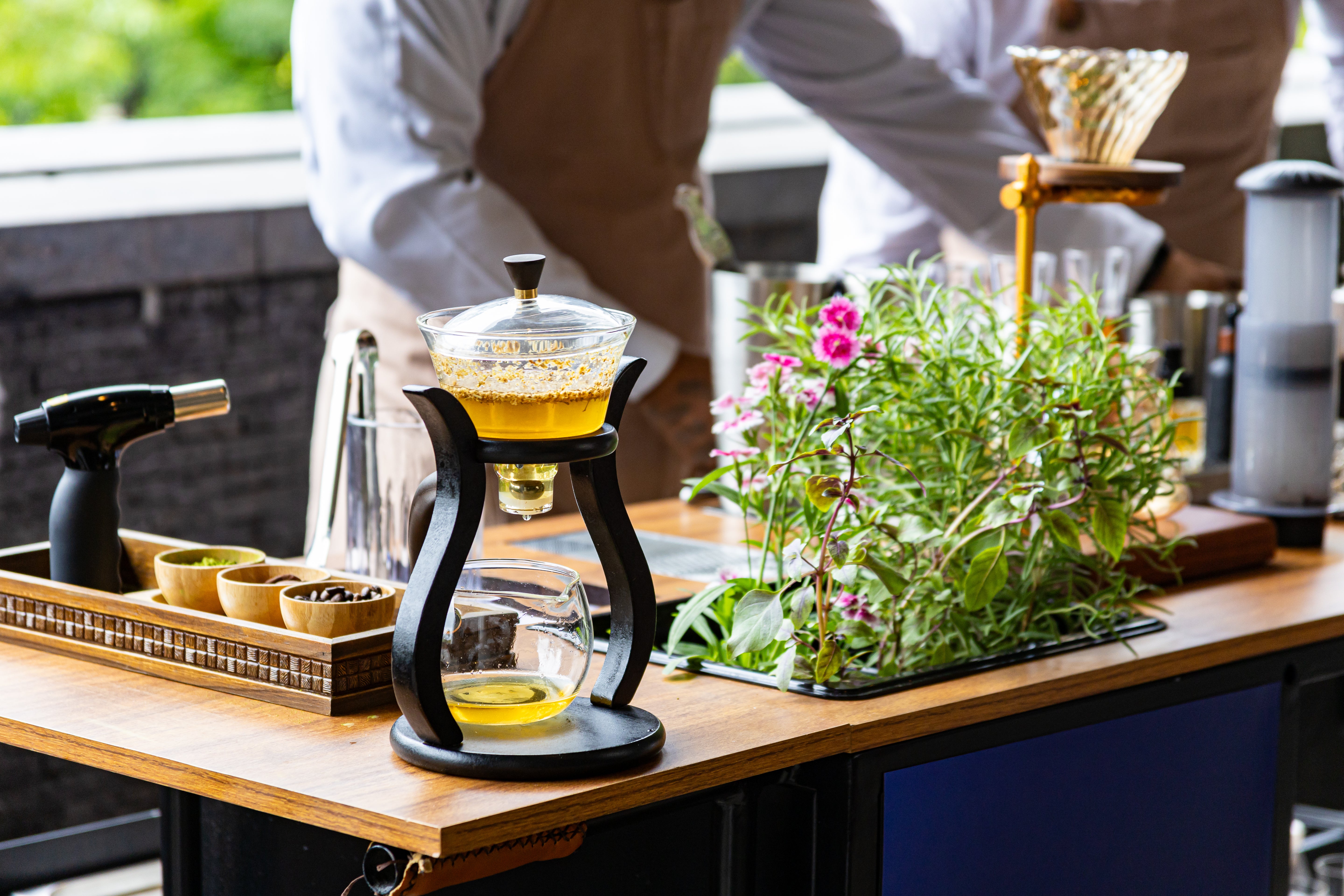 Atuamos com métodos especiais de diferentes extrações de café, chás aromáticos, infusões botânicas, bebidas quentes ou geladas, também evidenciamos o Matchá sendo um dos pilares desse serviço.