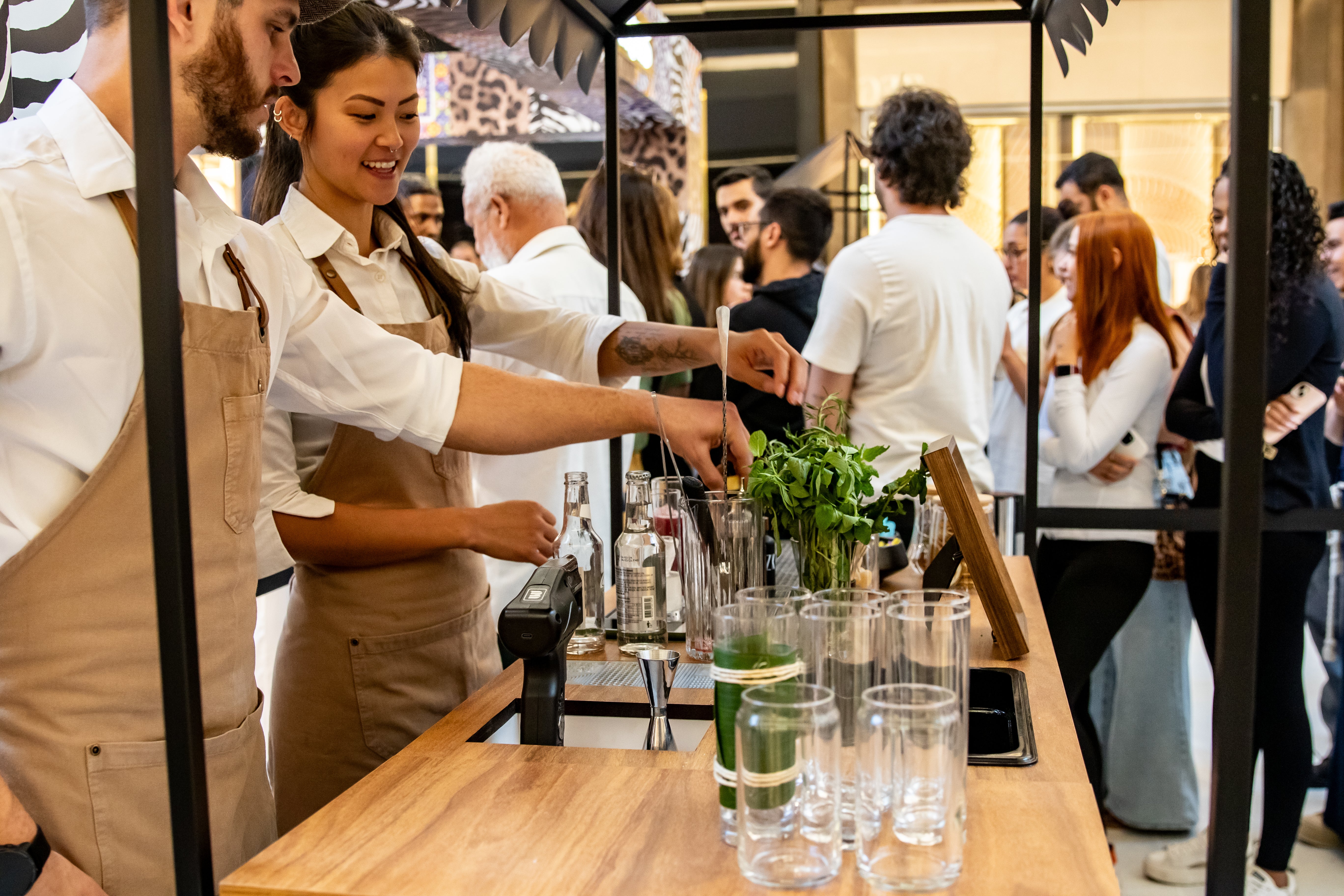 Aplicamos esse conceito em diferentes formatos: welcome drinks temáticos, carta de coquetéis exclusivos, estações interativas e múltiplas criações em bebidas não alcoólicas.