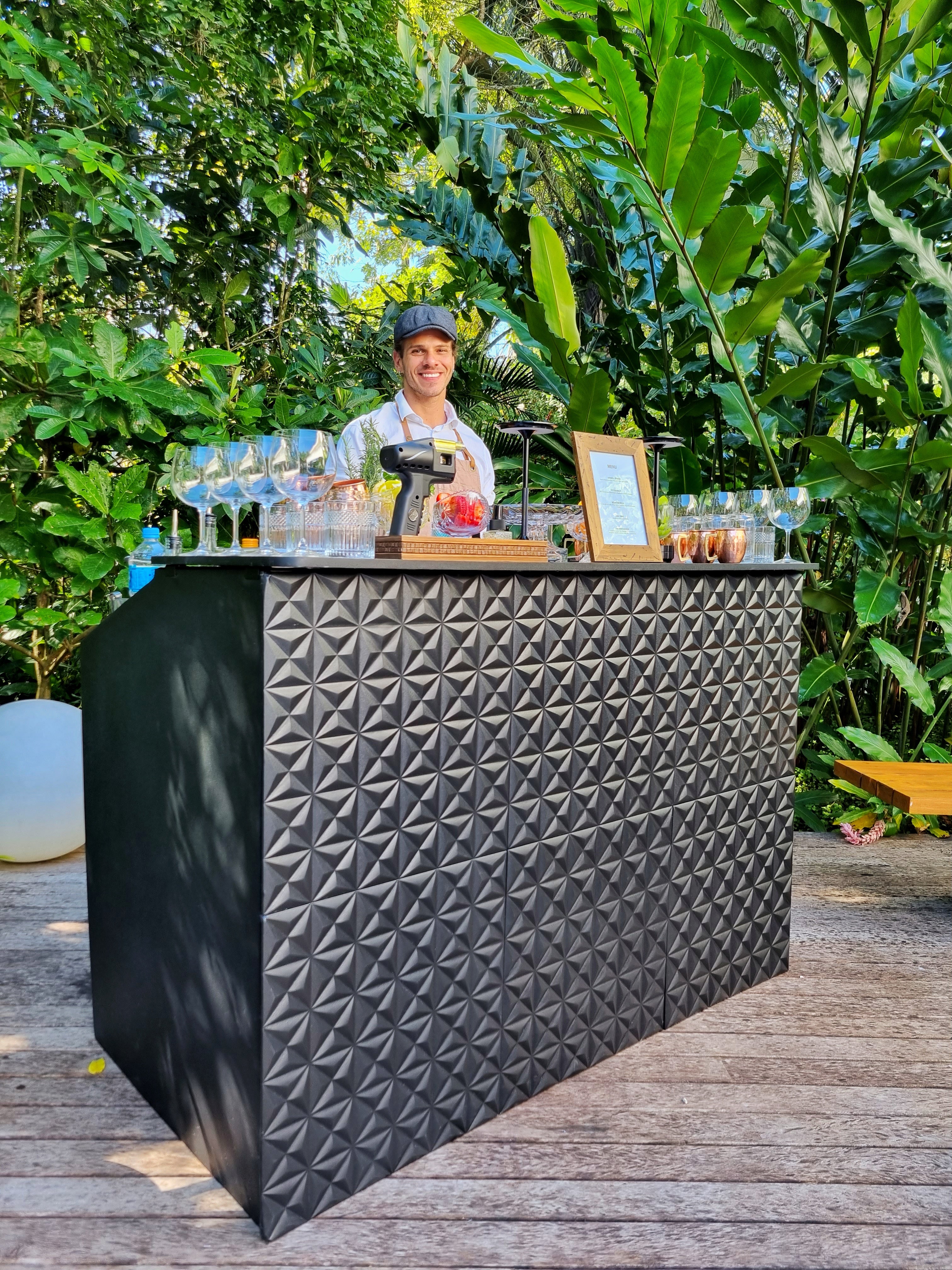 Criamos bebidas exclusivas que traduzem a identidade da marca e os objetivos do evento, unindo conceito, sabor e estética. Cada ingrediente, aroma e nome é escolhido para comunicar valores e sensações, tornando a mixologia parte da estratégia de branding. As experiências são visualmente marcantes e sensoriais, gerando engajamento e memórias.